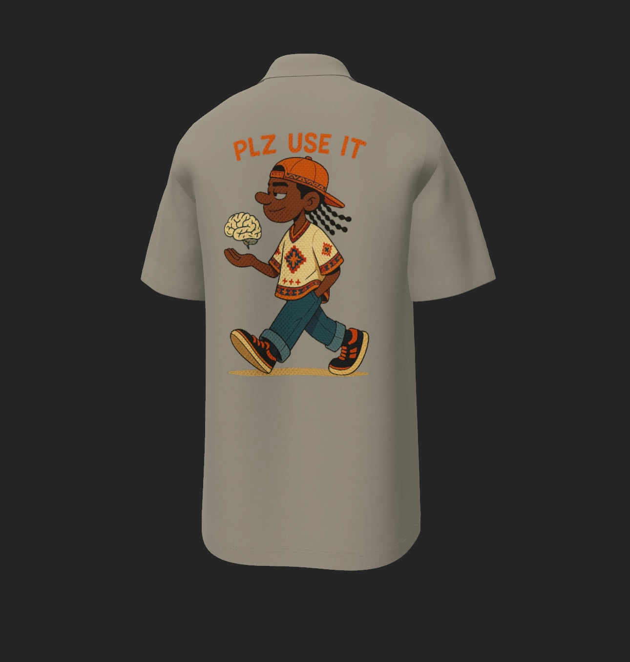 240 GSM, it offers a soft yet durable feel, ensuring all-day comfort. The spread collar and single-button placket maintain a timeless look, while the drop shoulders and oversized fit add a contemporary touch. Finished with high-quality embroidery for a textured, premium design that stands the test of time.